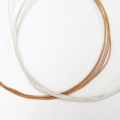 Our wound gut strings are designed to give a full warm tone with a quick response. The gut cores are pre-treated under humidity controlled conditions to ensure stability of constructions and tone, then round wound silver plated copper (plain copper on request) or solid silver wire. Strings with solid silver have a quicker response and a brighter sound. Copper and solid silver wound strings can also be polished for a smooth surface.